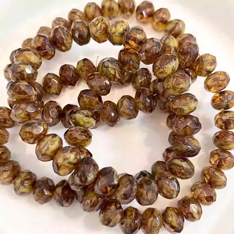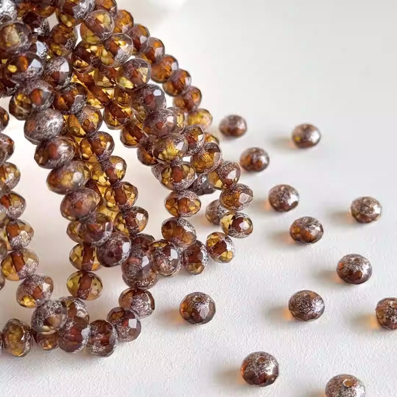 Imported Czech beads retro transparent brown faceted wheel spacer beads 5*7mm loose beads