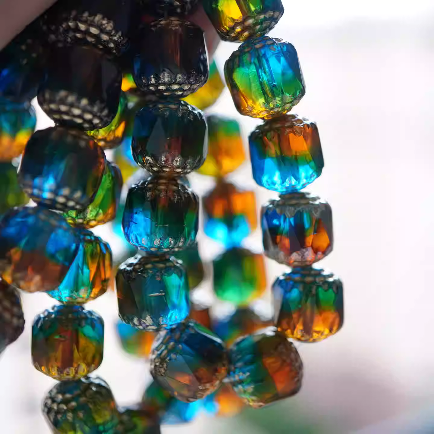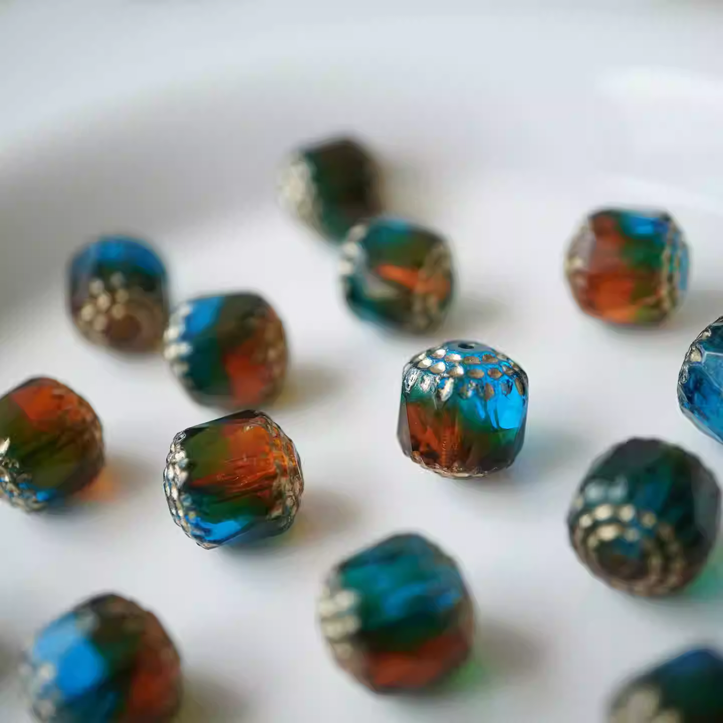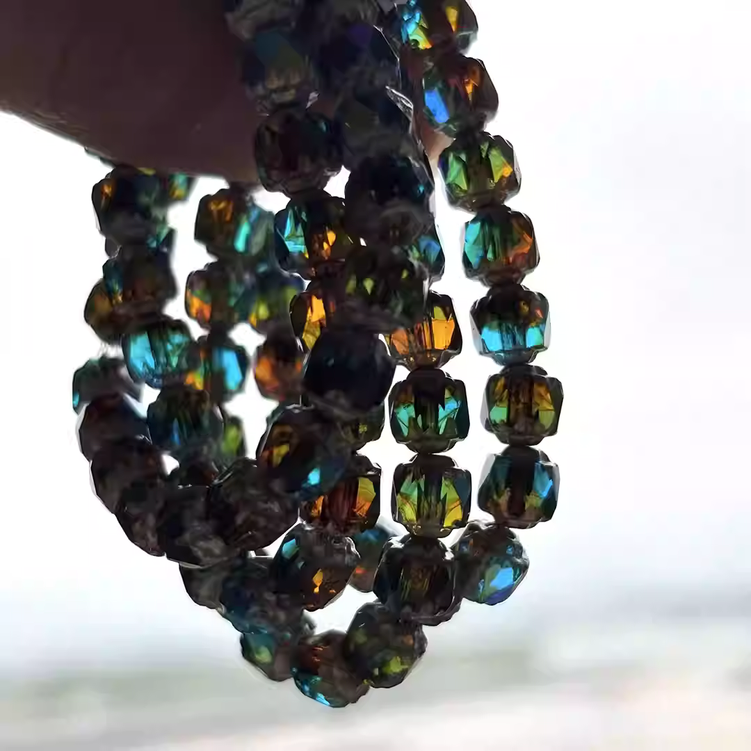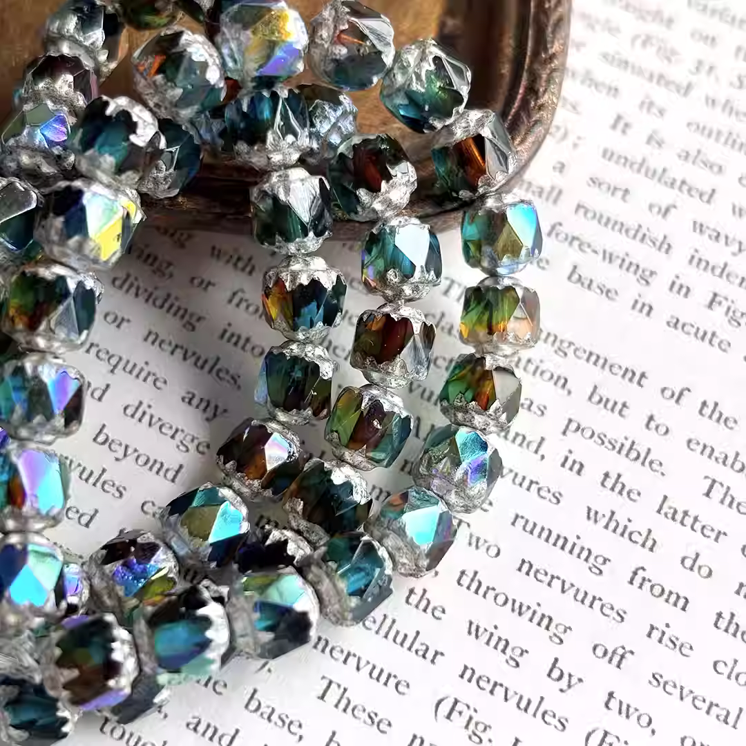 Imported Czech beads amber blue-green faceted vintage cathedral beads 10mm loose beads