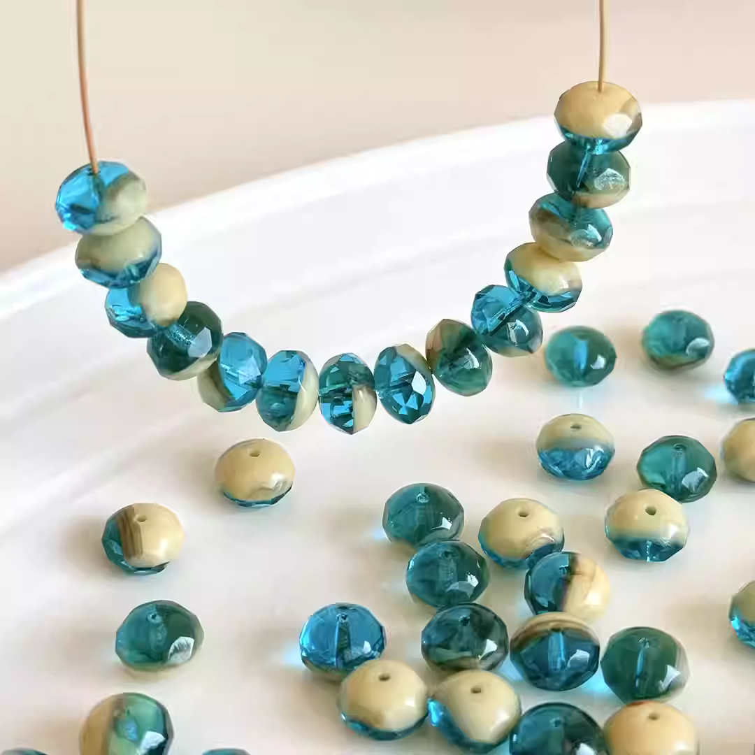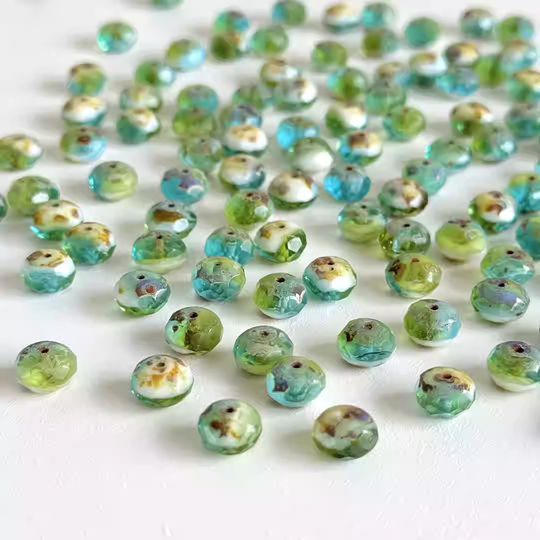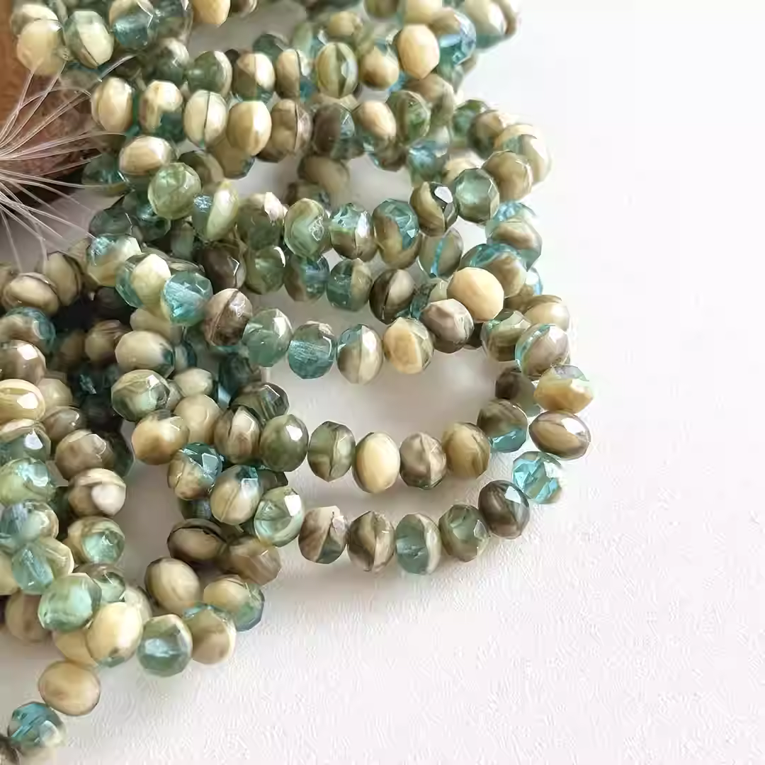Imported Czech amber beads yellow blue green white mixed color faceted spacer beads 5*7mm loose bead