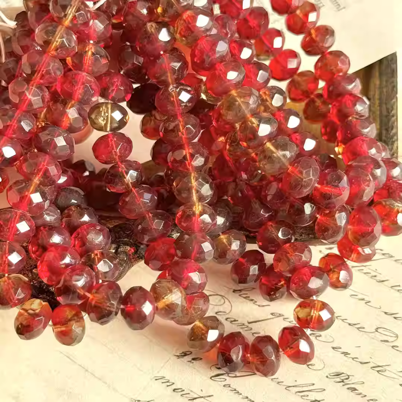 Imported Czech jewelry stone red amber gradient mixed faceted beads 9*6mm loose beads