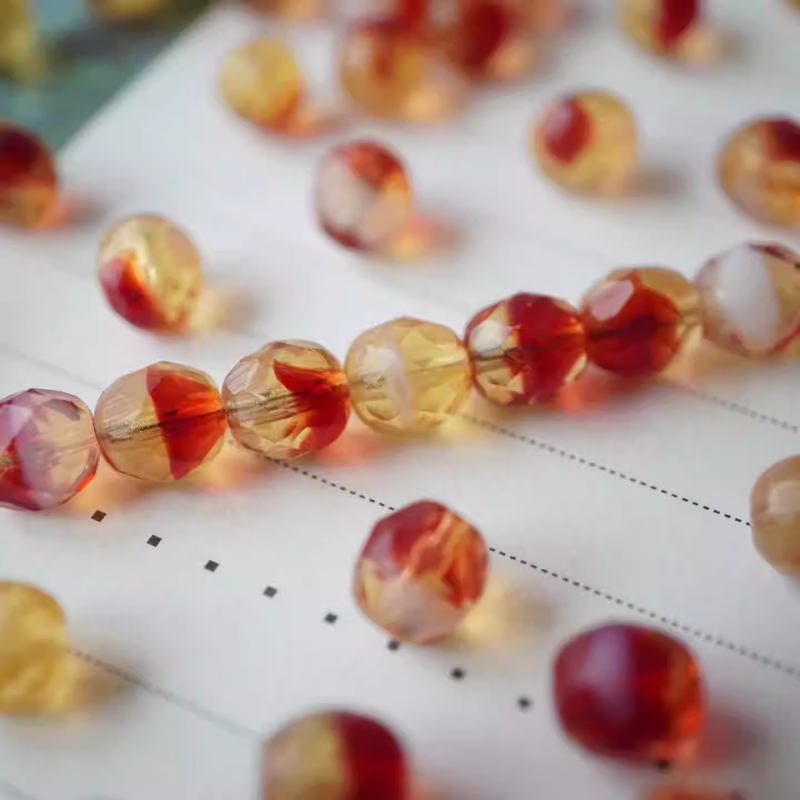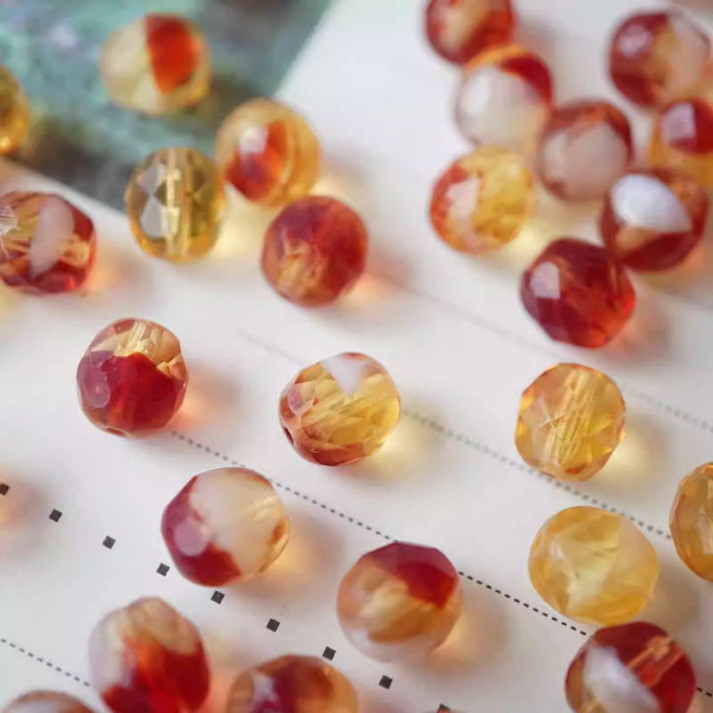 Czech beads transparent yellow and red retro versatile faceted fire-thrown beads 8mm loose beads