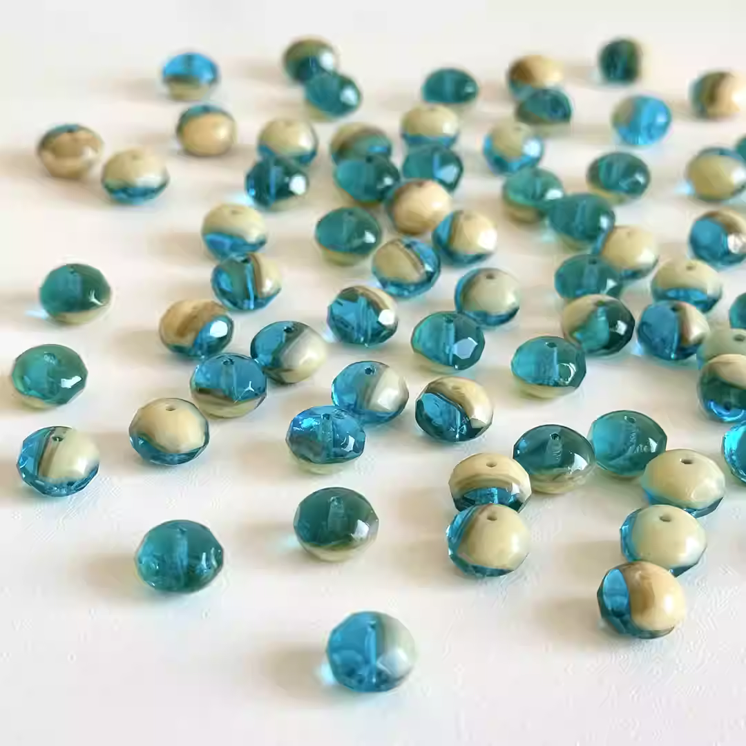 Imported Czech beads transparent blue milk tea mixed color faceted beads 6*8mm loose beads