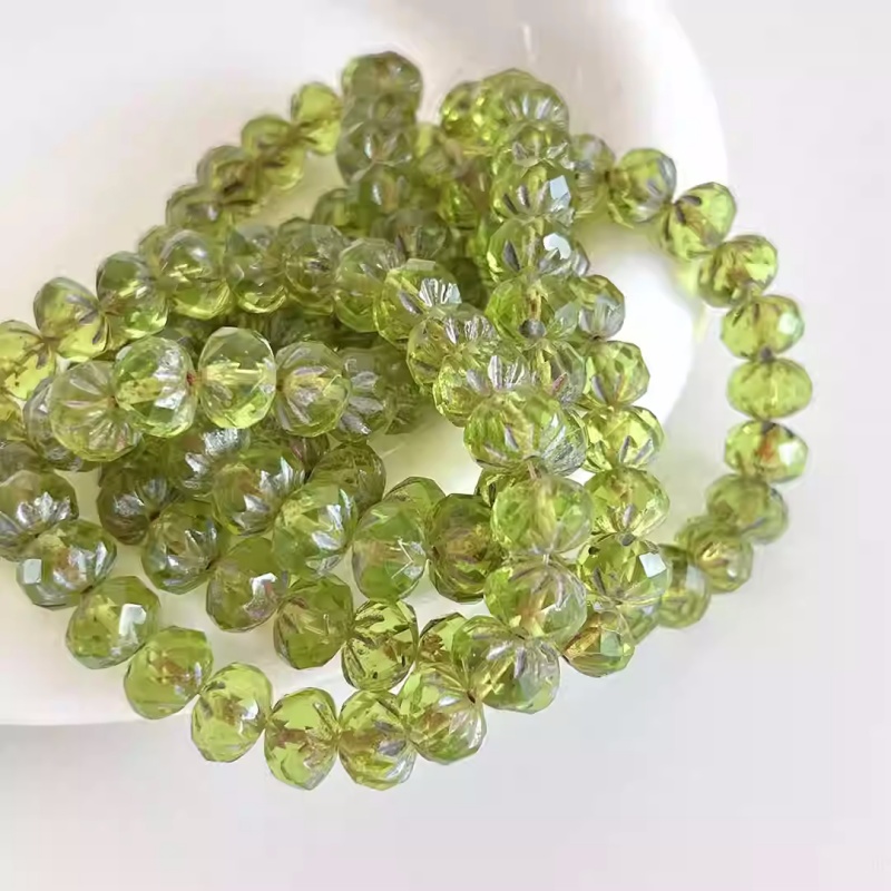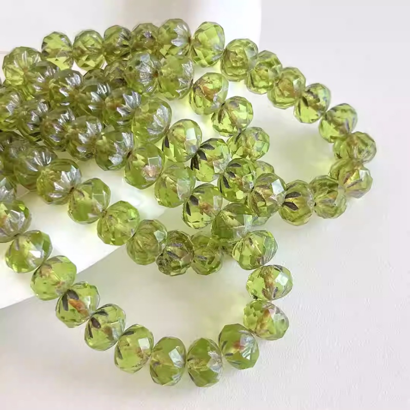 Imported Czech beads transparent olive green faceted wheel spacer beads 6*9mm loose beads