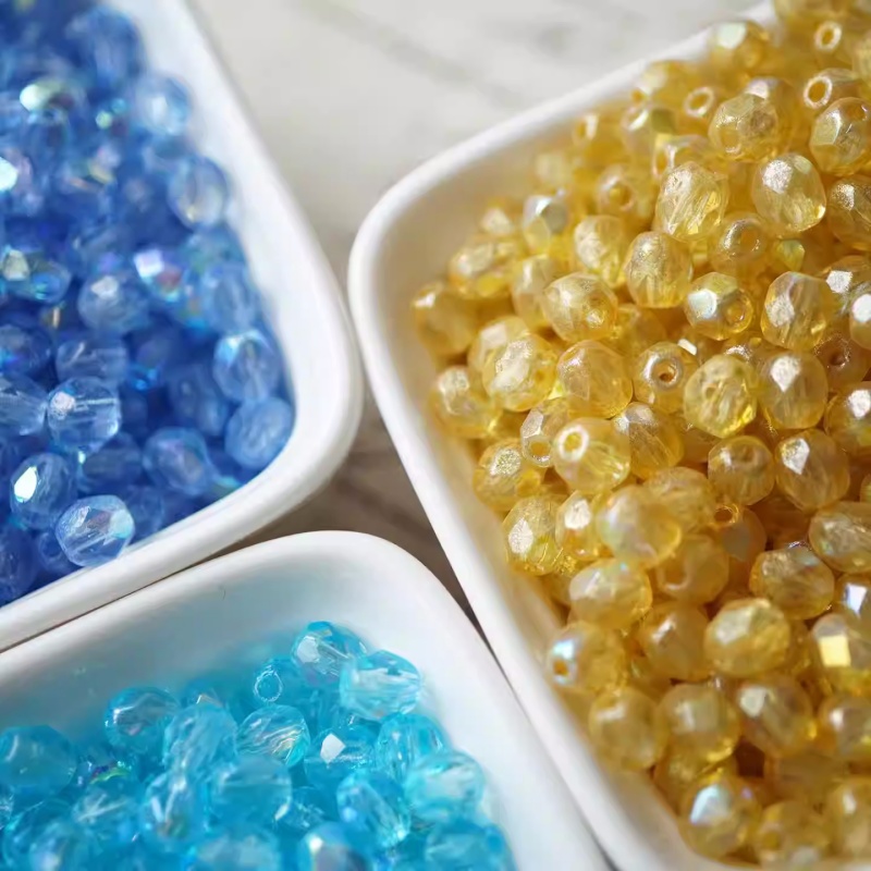 Imported Czech yellow and blue retro wild fire-thrown beads 5mm handmade DIY beaded necklace materia