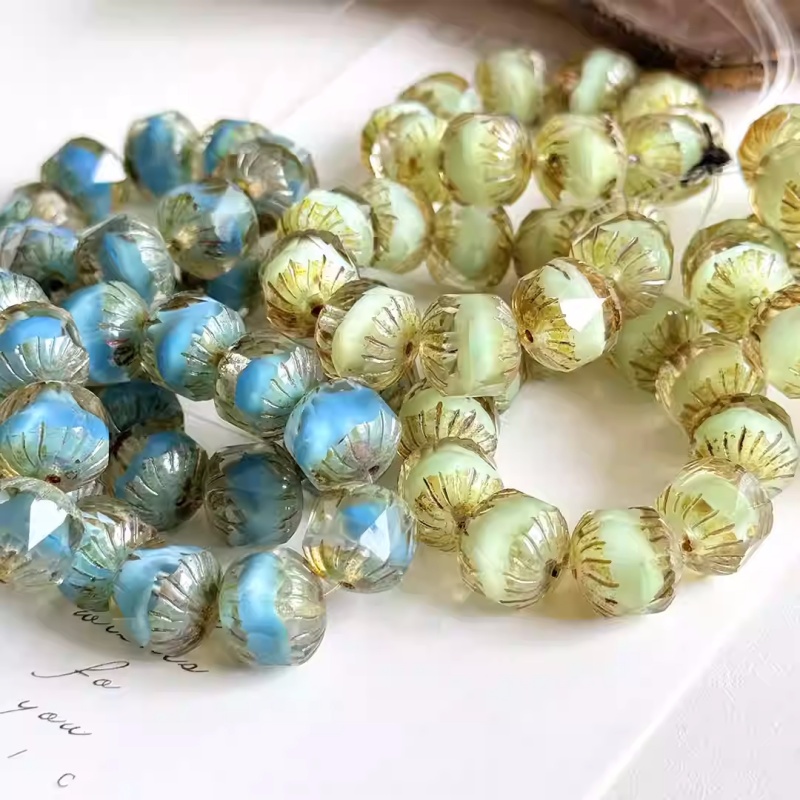 Imported Czech beads sandwich blue-green retro faceted beads 10mm loose beads