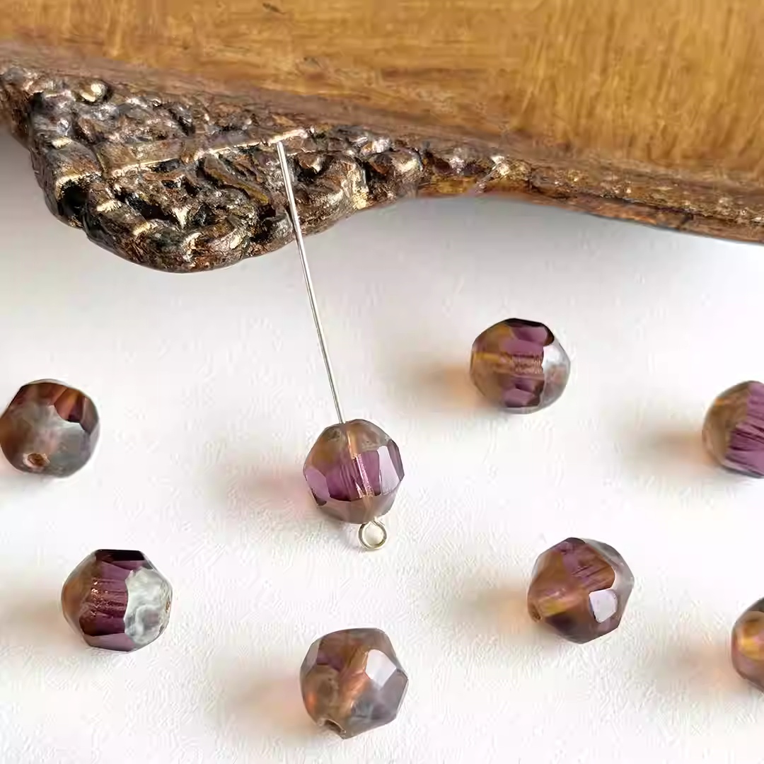 Imported Czech beads vintage transparent purple faceted beads 10mm loose beads
