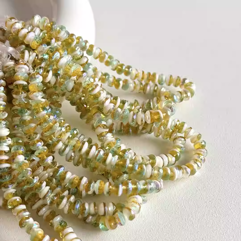 Czech beads transparent green and yellow mixed faceted wheel spacer beads 5*3mm loose beads
