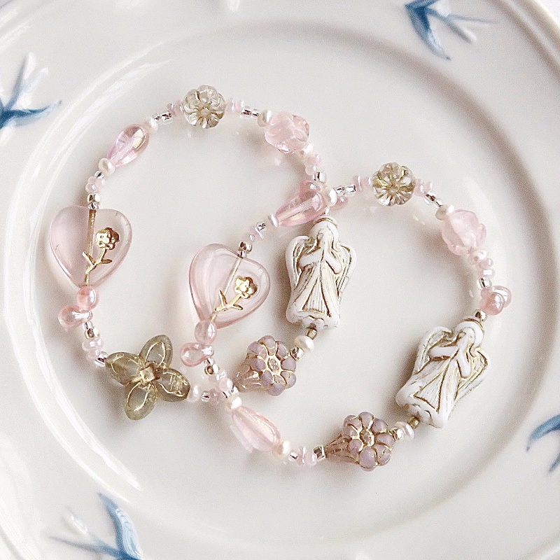 Pink Angel Original Pink and White High-end Czech Bead Bracelet