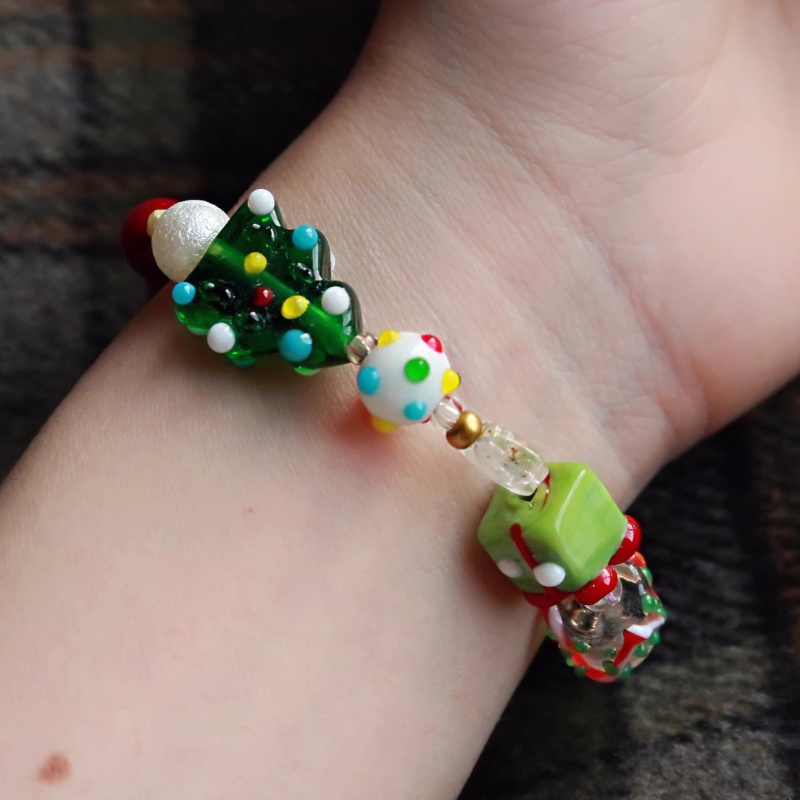 Christmas Childlike Beaded Bracelet Original Czech Bead Handmade Glass Bead Bracelet