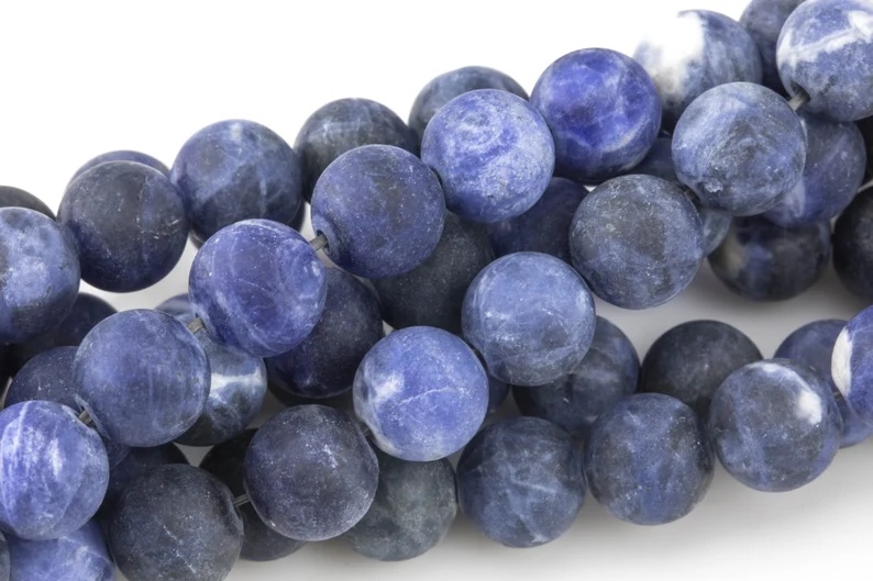 Natural Dark Blue Sodalite, High Quality in Matte Round- Gemstone Beads