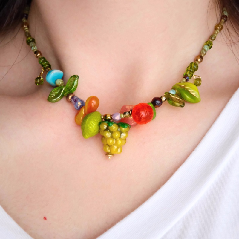 Original Czech bead necklace with natural plant and fruit colors