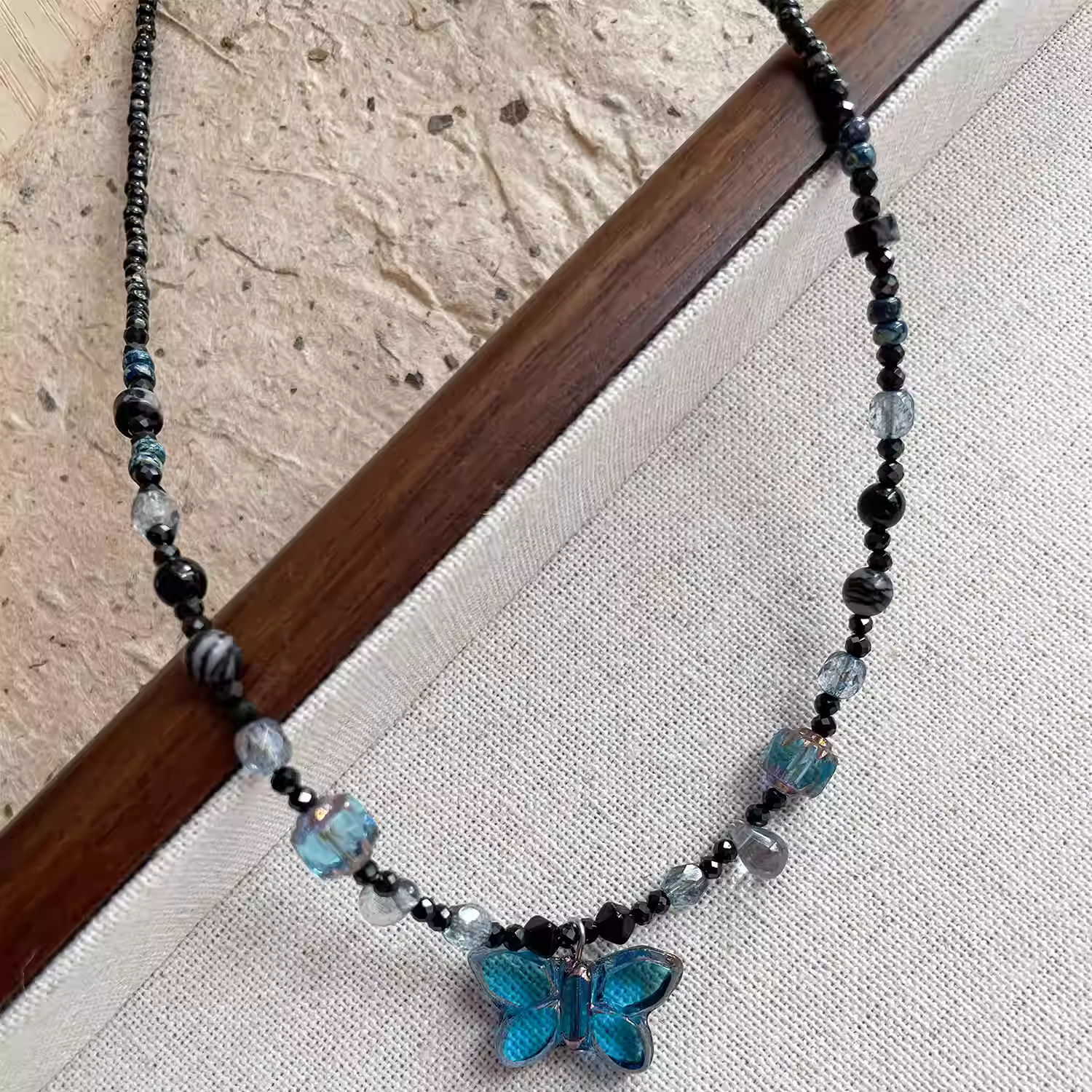 Original design "blue butterfly" Czech bead necklace female niche retro temperament vintage clavicle chain