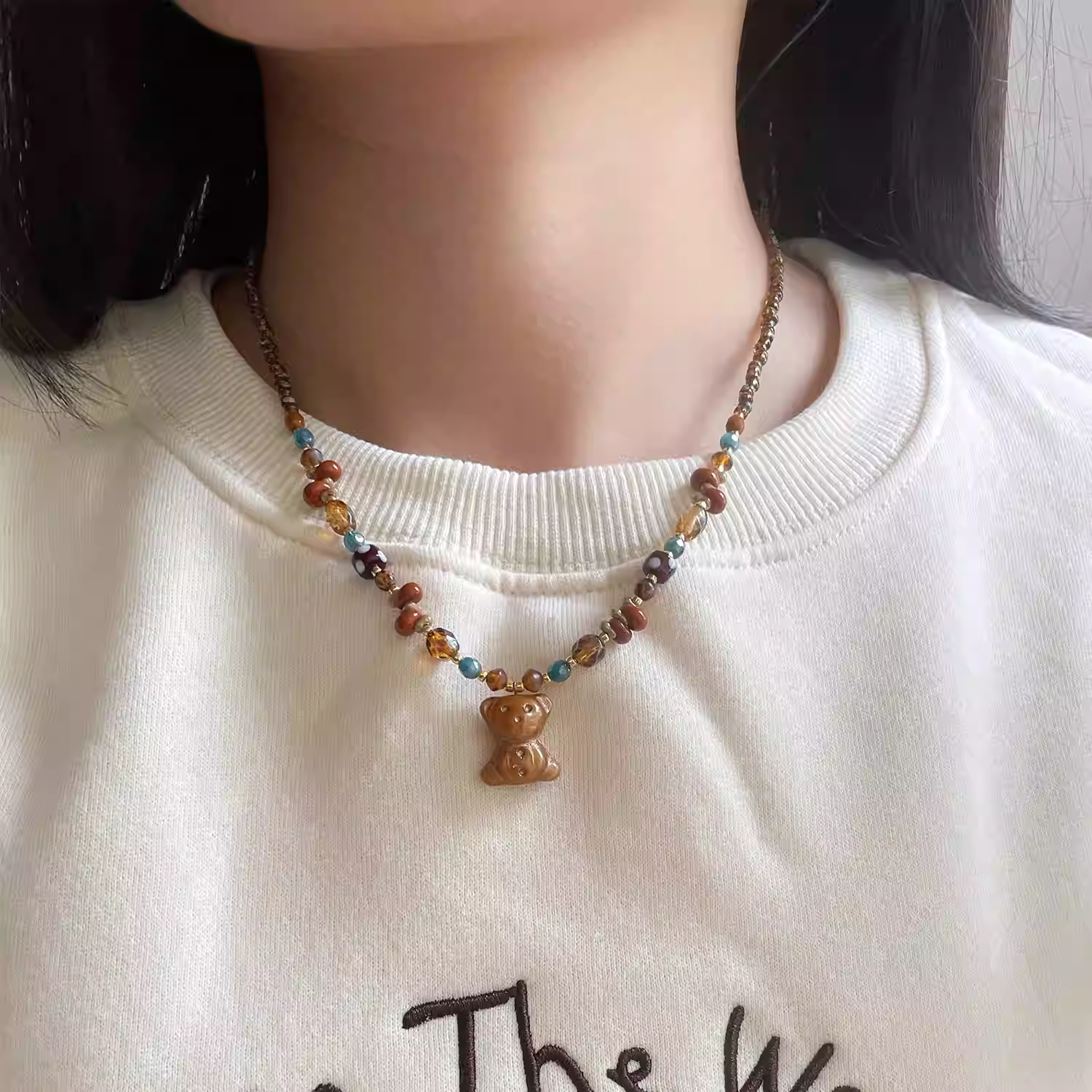 Hand-painted ceramic beads, Czech glass, etc. Hardware is high-color titanium steel.