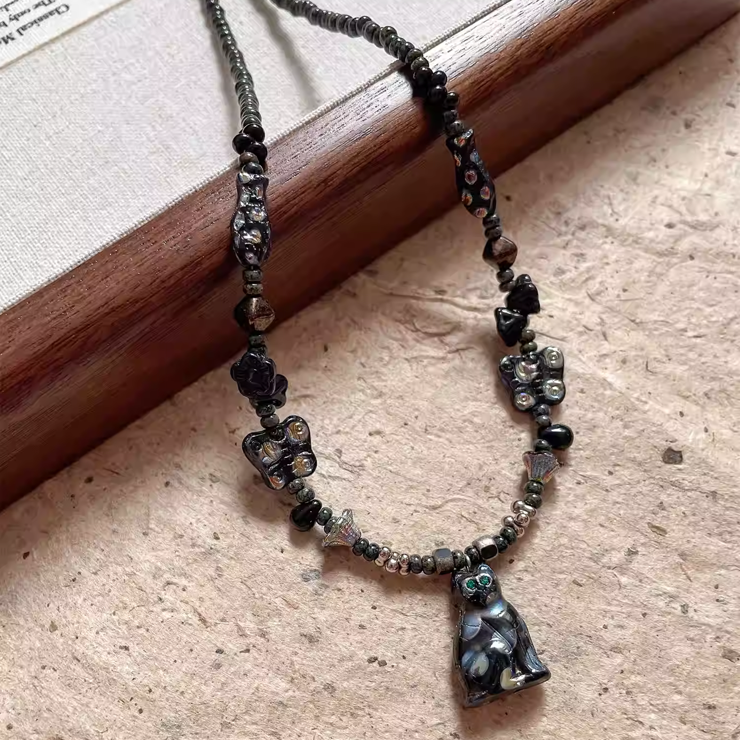 Original design "cat" retro Czech bead necklace for women, niche temperament, versatile sweater chain