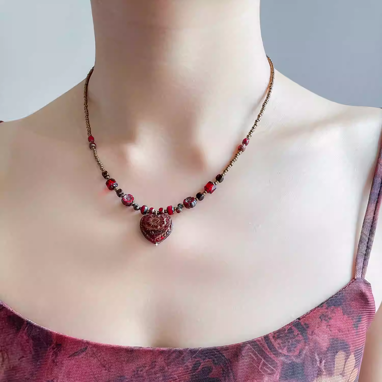 Original design "Witch Heart" niche retro temperament Czech bead necklace female clavicle chain necklace